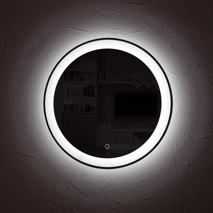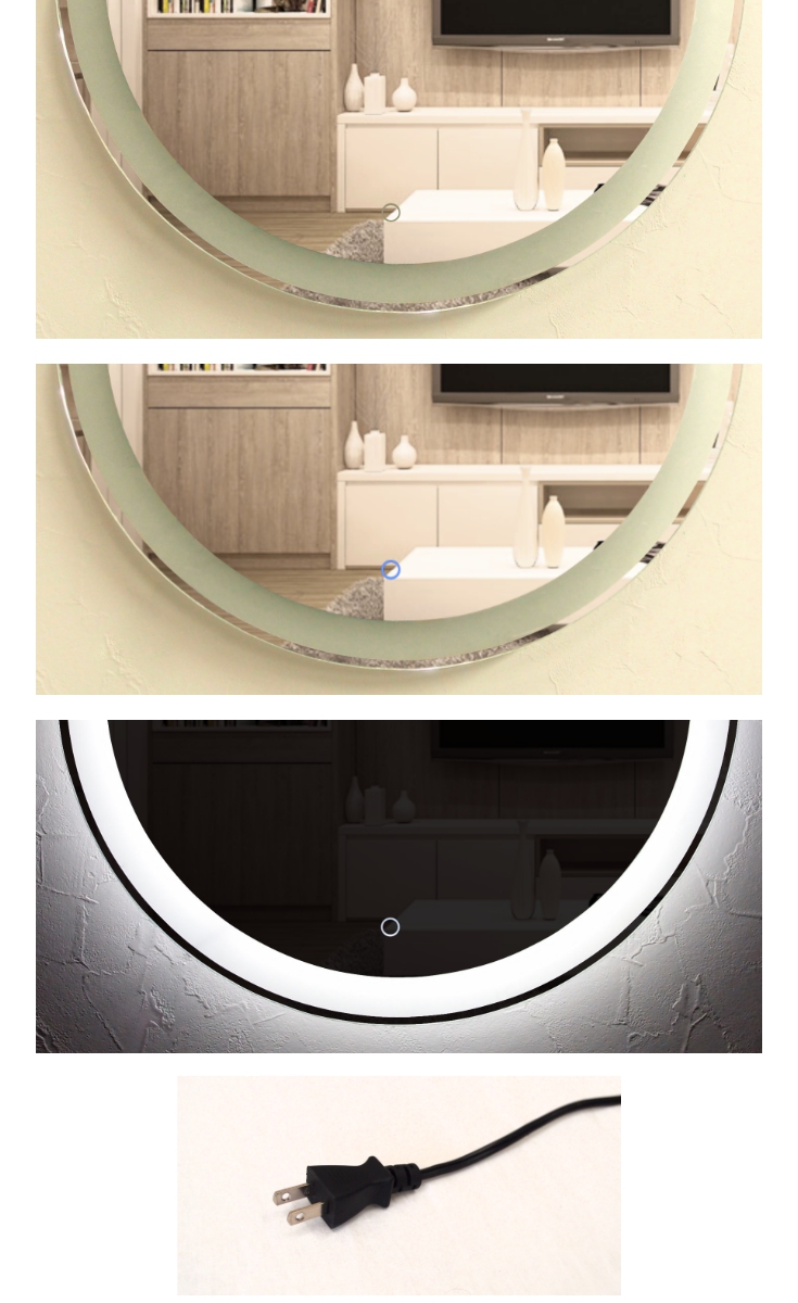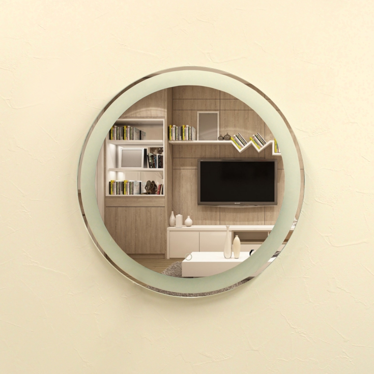 壁掛けLEDライト付き浴室洗面化粧台ミラー サークル型 LED照明フレームレスミラー 60cm