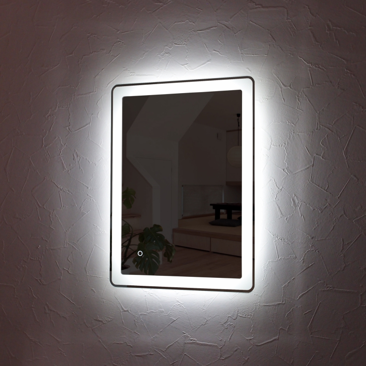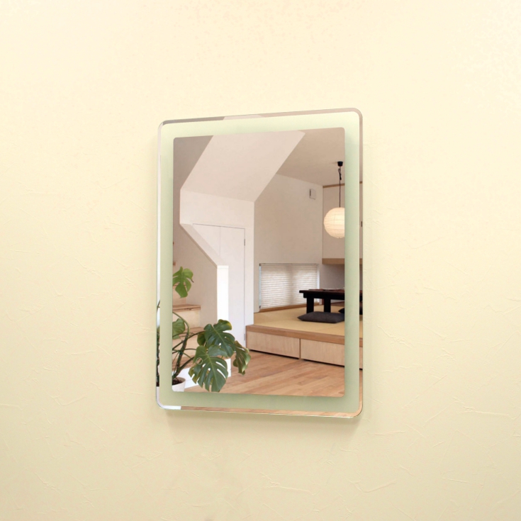 壁掛けLEDライト付き浴室洗面化粧台ミラー 角丸 LED照明フレームレスミラー 80cm×60cm