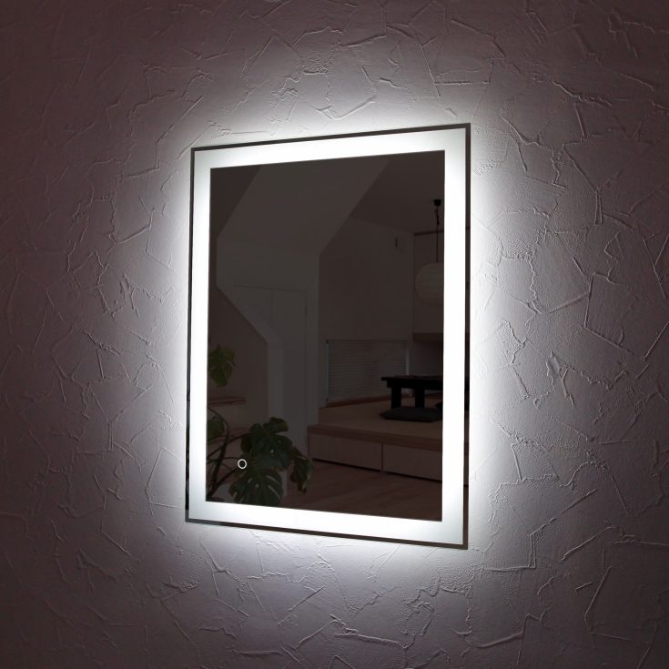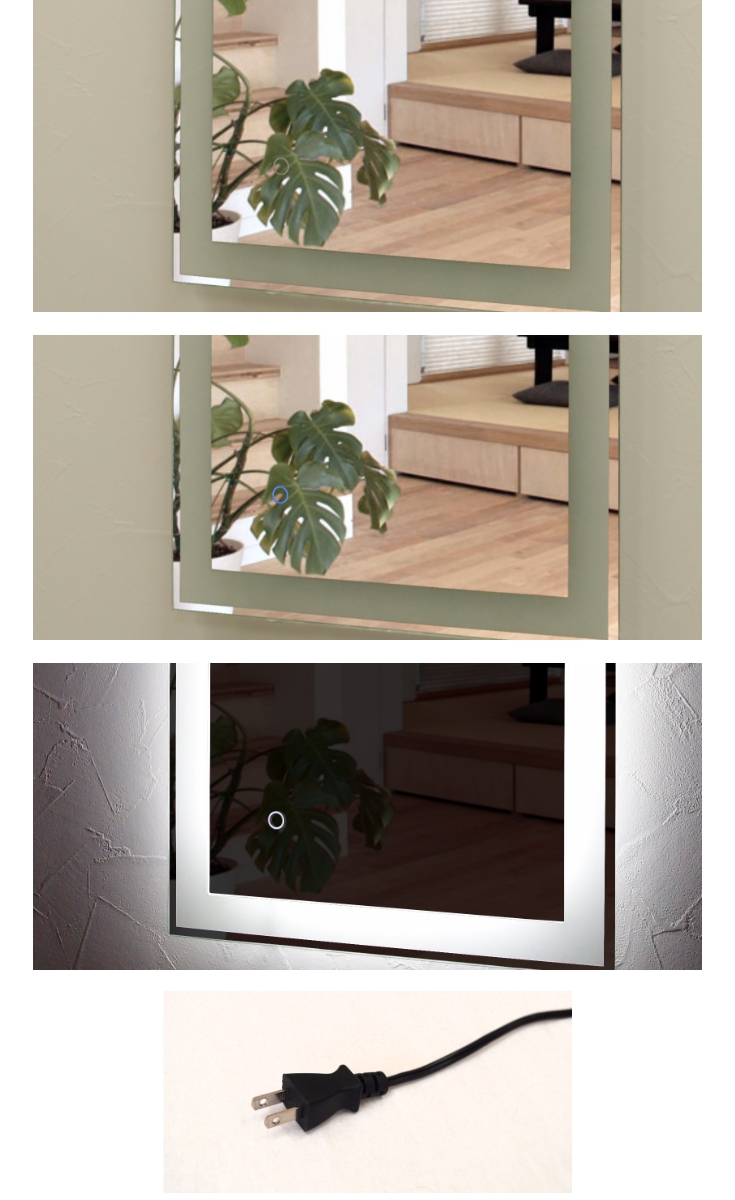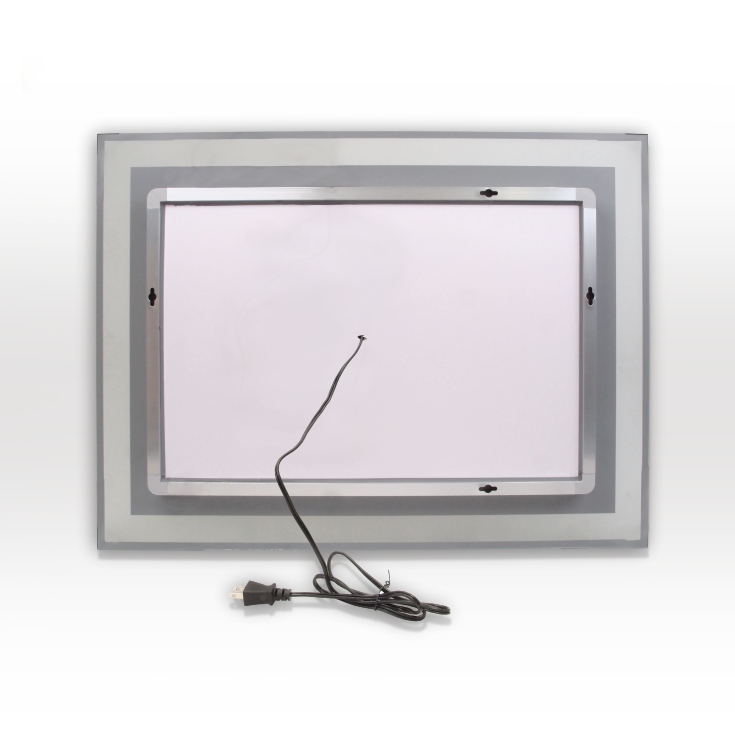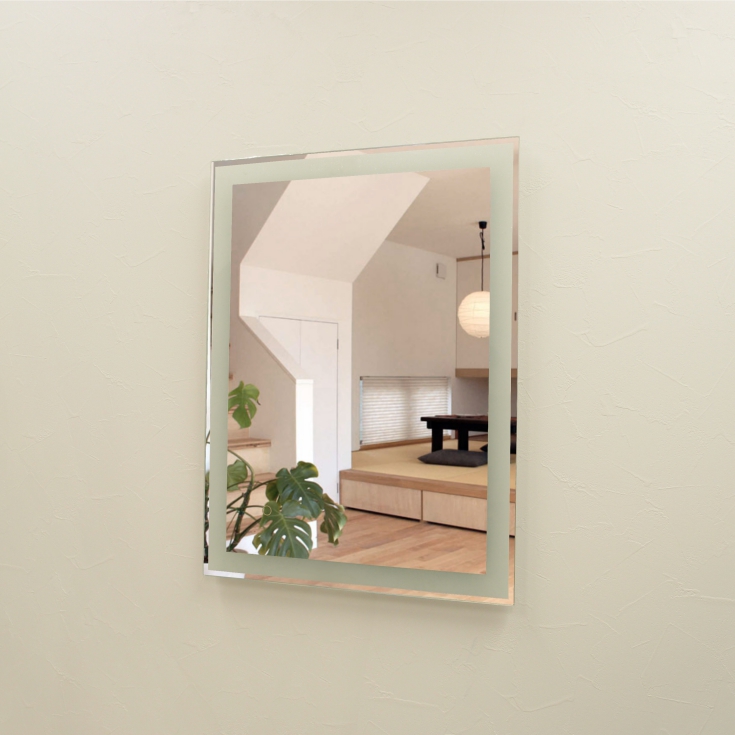 壁掛けLEDライト付き浴室洗面化粧台ミラー スクエア LED照明フレームレスミラー 80cm×60cm